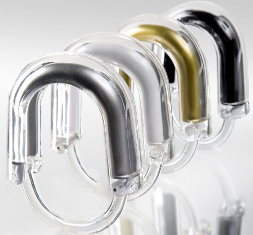 - المنتجات من البلاستيك والمعادن. السنانير البلاستيكية للستائر هي خيارات رخيصة وجودة. لكنها ليست مناسبة للمواد السائبة والثقيلة ، وكذلك لإلقاء نظرة الستار. كرامتهم - حركة صامتة على الطنف في عملية رسم الستار. يمكن تمثيل المعادن بالألمنيوم والنحاس. إذا قمت بشراء منتج ليس بجودة عالية ، فهناك إمكانية لتشكيل بقع داكنة وصدأ على القماش.