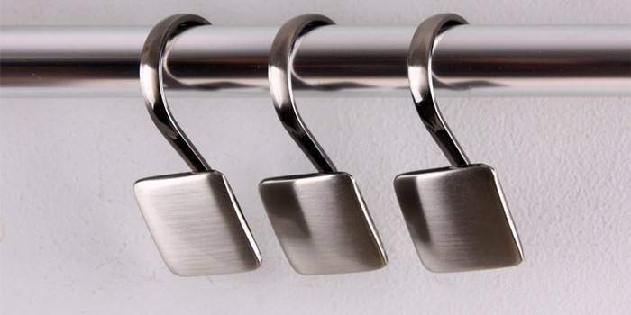 يُطلق على الموضوع المسؤول عن تثبيت ستارة قضيب الستارة خطاف. هذه هي خيارات الميزانية الأكثر لاعبا اساسيا ، تمتلك سهولة في العملية. هذه العناصر مثالية لإصلاح المادة الرقيقة والخفيفة.