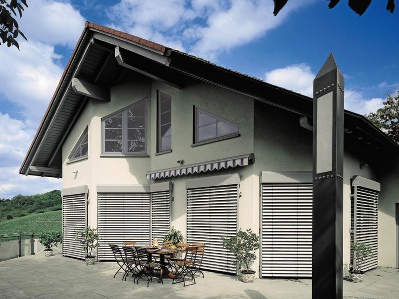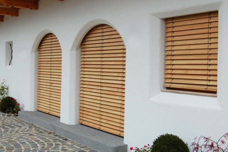 هناك عدة أنواع من الستائر الدوارة الخارجية. أنها تختلف في شكل صفائح: مسطحة ، C وشكل Z. وغالبا ما تؤخذ الأخيرة لتجميع rashshtor التعتيم.
