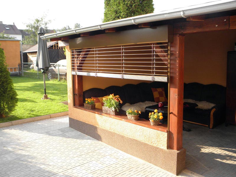تعتبر Rafshtora أو الستائر الدوارة للشارع وسيلة للحماية من أشعة الشمس ، بالإضافة إلى توفير البرودة في الغرفة. العمل على نفس مبدأ الستائر التقليدية. الميزة الرئيسية - يتم تثبيت الأجهزة في خارج النافذة. عندما تختفي الحاجة إليهم ، يتم جمع الستائر بسهولة في صندوق لفة. الإدارة تتم باستخدام جهاز التحكم عن بعد.