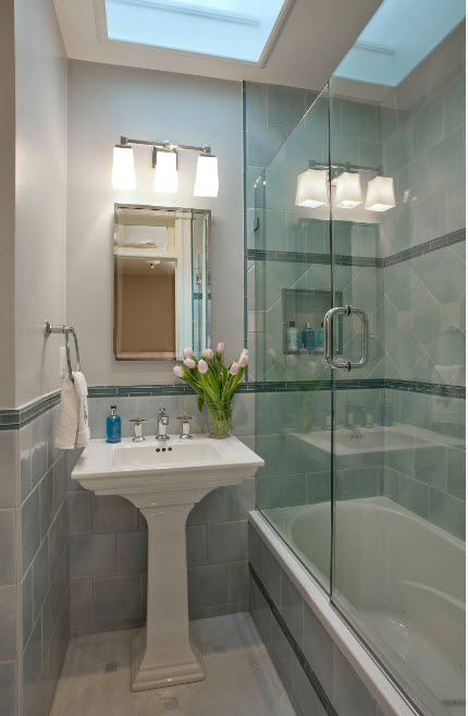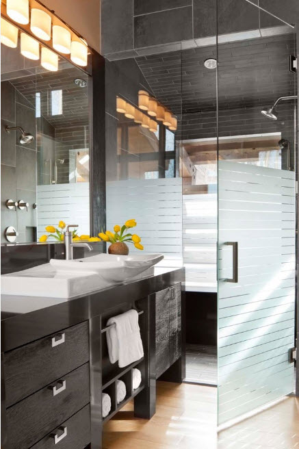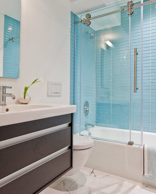 يعتبر الزجاج من أكثر المواد العملية المستخدمة في إنهاء الغرف المبللة.