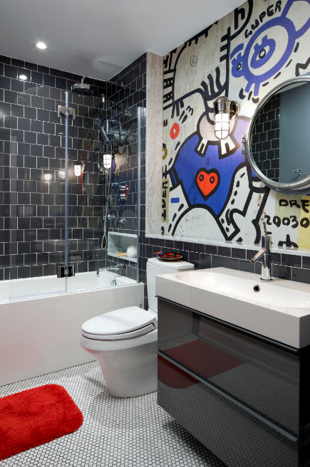 - توافر في غرفة الحمام. يجب أن تفكر في التلوين ، حيث أنه من الضروري في بعض الأحيان استخدام المرحاض والحمام في نفس الوقت من قبل عدة أشخاص.