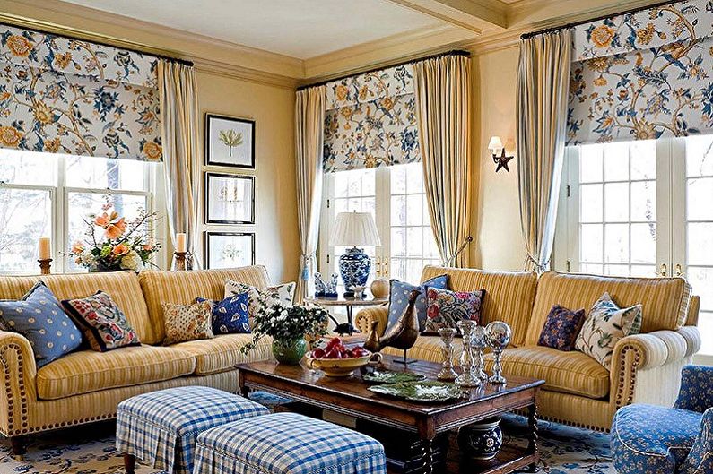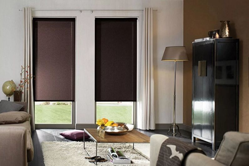 في زخرفة القاعة الحديثة ، أصبحت ستائر القطع البسيطة (المستقيمة) شائعة خلال فترة الكساد الكبير. مفهوم التصميم الداخلي بالعناصر الوحشية مأخوذ من التصميم الأمريكي. يمكن أن تستكمل غرفة المعيشة ، بالإضافة إلى Rolshtor ، بستائر مجمعة ثقيلة ، إذا كان السقف مرتفعًا وفتح النافذة ممتلئًا.