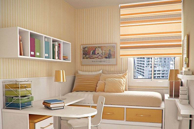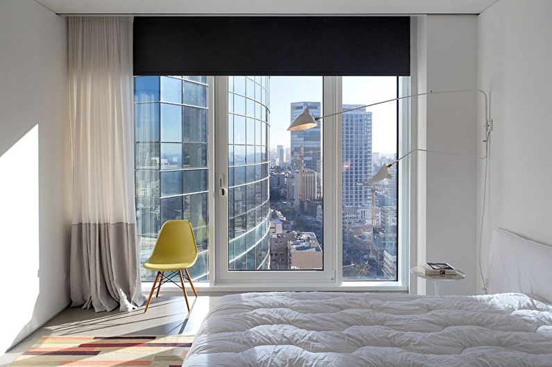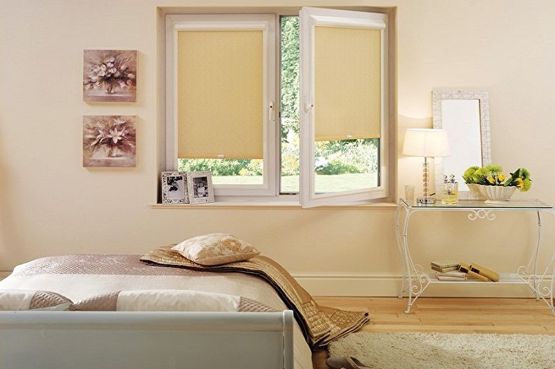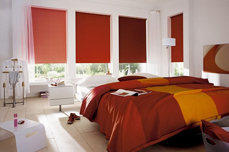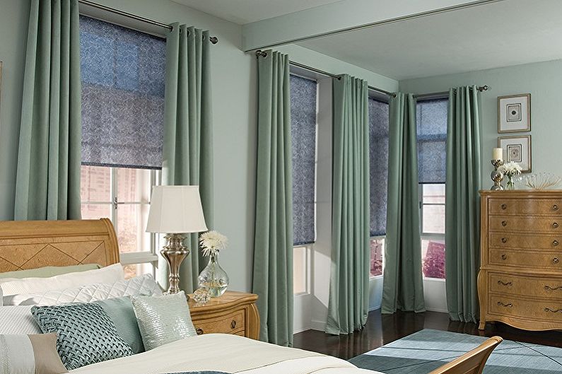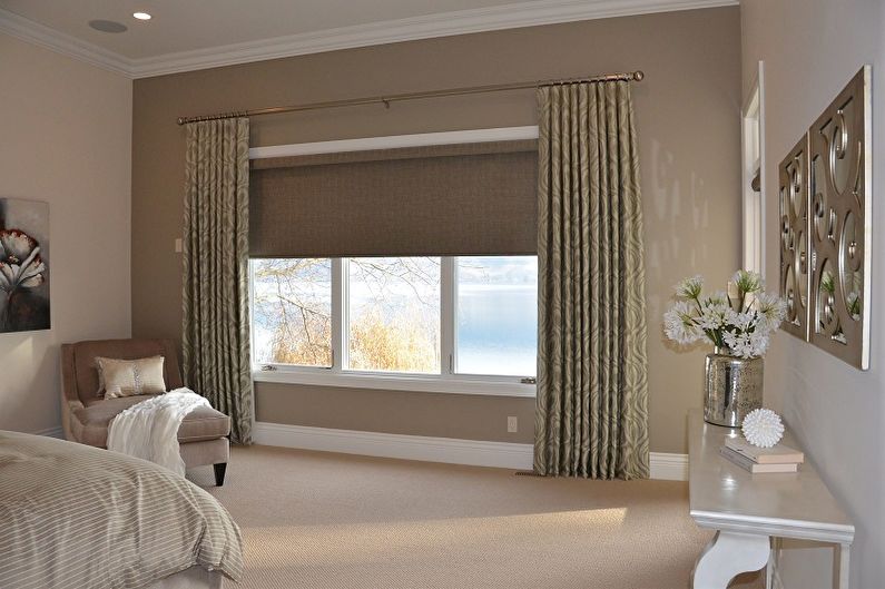 في غرفة النوم ، ينبغي أن يعزز كل شيء الراحة الهادئة. تساعد الستائر غير المنفذة على خلق وهم الليل ، حتى في النهار ، عندما تحتاج إلى النوم. ستكمل ستارة الضوء عندما تحتاج إلى السماح بمزيد من الضوء في الغرفة. مزيج من الستائر الثقيلة والستائر الدوارة غير مرغوب فيه لأنه يمزق الفضاء. من الأفضل استخدام الطرز التي تحمل الاسم الشرطي "ليلا ونهارا".