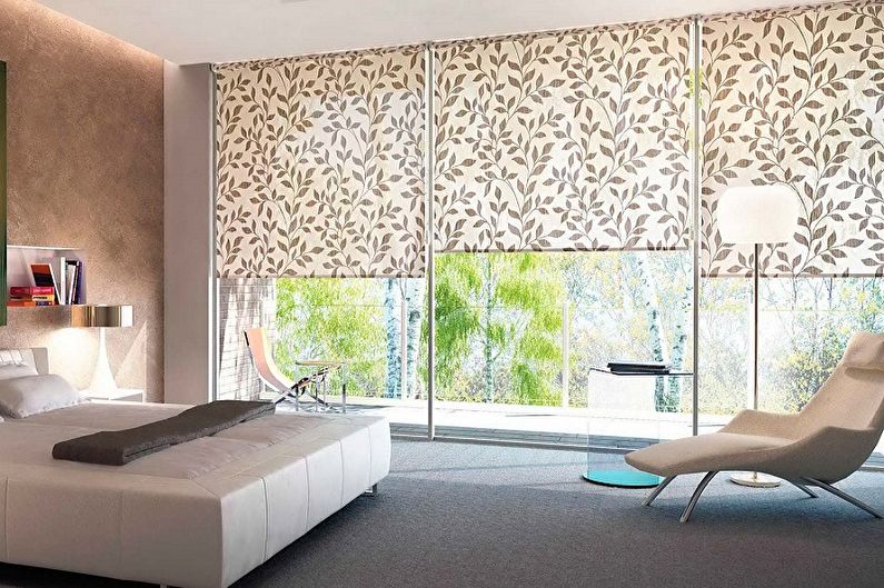 أنواع الستائر الدوارة لغرفة النوم وغرفة المعيشة: التصميم ، الصورة