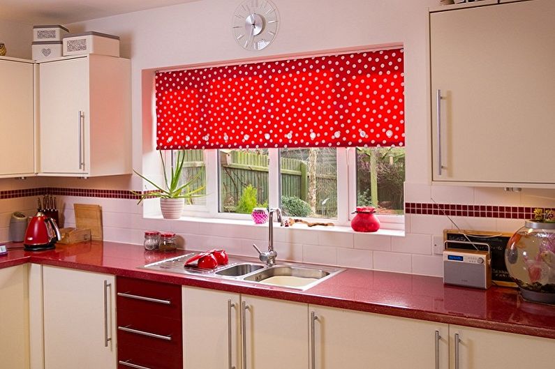يمكن العثور على الستائر الدوارة ، والمثبتة على النوافذ البلاستيكية (تظهر صورهم أدناه) في العديد من المطابخ. يتم تثبيتها مباشرة على الإطار أو تقريبًا تتدفق مع العتب. لجعله ديكورًا غير عادي ، أضف ستائر شفافة ، وانزل إلى عتبة النافذة أو أقل قليلاً. إذا كنت لا تعرف مكان وضع الجانب العريض من الستارة ، فيمكنك ربطها بشريط جميل لتتناسب معه.