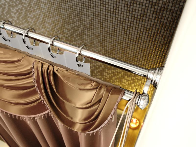 عند اختيار طريقة تثبيت الستائر ، من الضروري مراعاة أن الطلاء المزخرف بالكورنيش المعدني سوف يستمر لفترة أطول إذا انزلاقت قطعة قماش أو حلقات بلاستيكية على طوله.