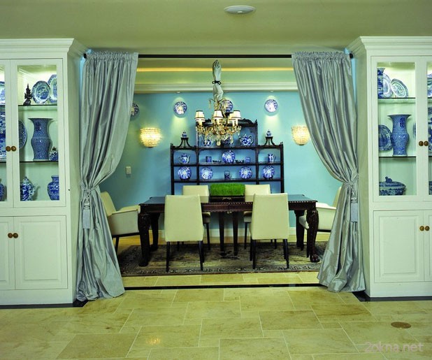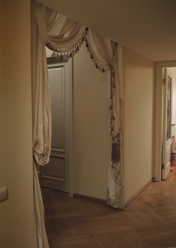 يجب أن تتوافق الستائر على المدخل مع النمط العام للداخلية.