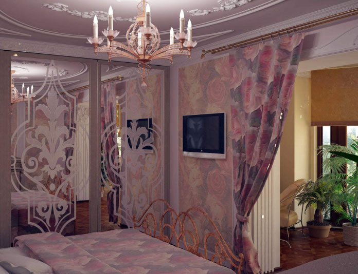 مطلوب في حالة عدم وجود باب ، لكنني أريد إخفاء الغرفة عن أعين المتطفلين. كما أنها تساعد على تحديد مساحة الغرفة ، لأن الباب يخلق مساحة مغلقة ، في غيابه يمكن تحقيق ذلك بالستائر. الستائر أصبحت شعبية مرة أخرى بسبب بساطتها ورخصها.