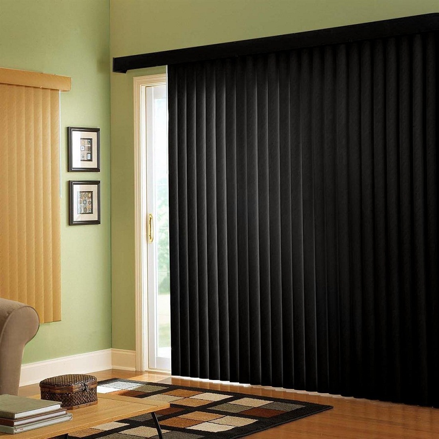 ستائر الخيزران العمودية تعطي الأصالة للغرفة. هذه الستائر لا تخاف من الماء ، لذلك يسهل العناية بها.
