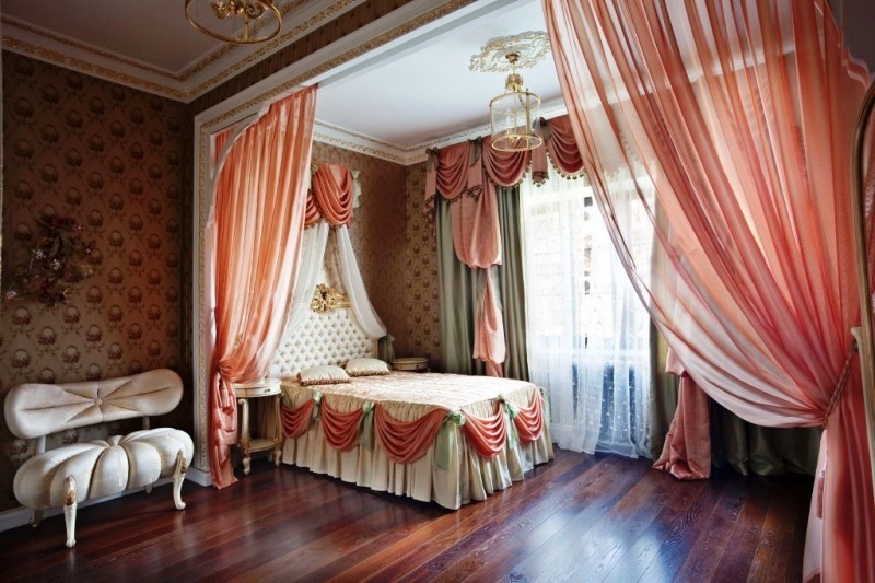 - النسيج. ستائر ثقيلة لغرفة مزينة بأسلوب كلاسيكي. سوف Lambrequins ، وفرش ، طيات تكون مناسبة هنا. مثالية لغرفة المعيشة. يمكن للستائر الخفيفة أن ترتب أي غرفة نوم ، وسوف توفر مساحة وراحة. مثالي للممر الصغير أو المطبخ بدلاً من التأرجح افتح الباب.