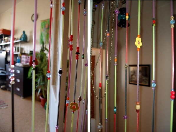 المنتجات التي تبدو مذهلة في أي الداخلية. هم من نوعين: من الأجزاء الطبيعية ومن الاصطناعية. يمكن أن تكون التفاصيل من المعدن والبلاستيك واللؤلؤ والزجاج والخشب من مختلف الأشكال والأحجام. كأساس للمنتج ، يتم استخدام خط السكك الحديدية وصيد الأسماك لتوتير المجوهرات. ستائر المعلقات لا تتداخل مع مرور الأطفال ، والحيوانات الأليفة. ومع ذلك ، إذا كان هناك أطفال وحيوانات أليفة في منزلك ، فكر فيما إذا كانت هذه فكرة جيدة ، لأن هؤلاء والآخرين سيواصلون خط الصيد باستمرار.