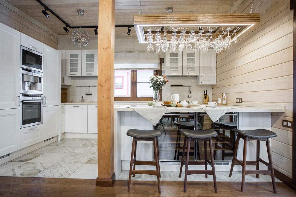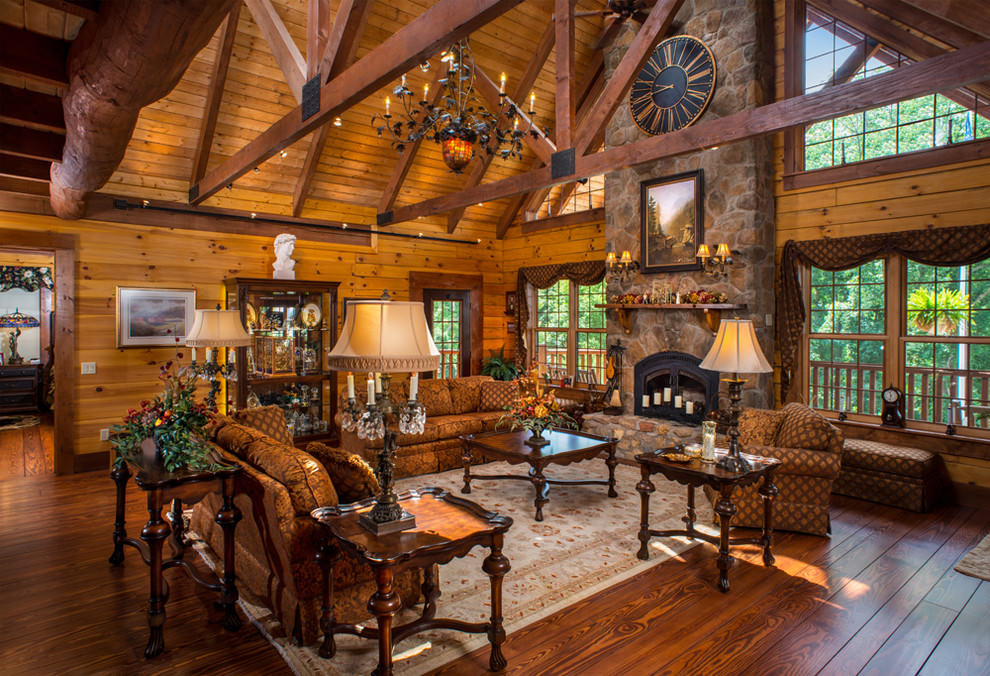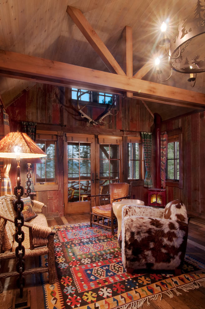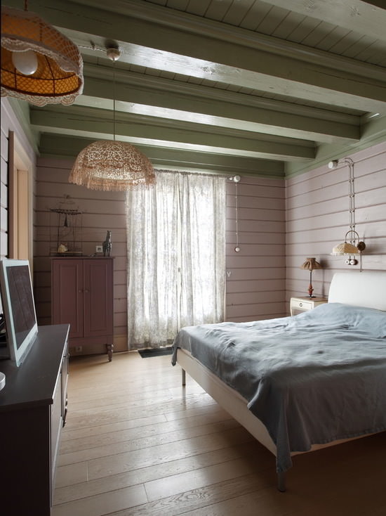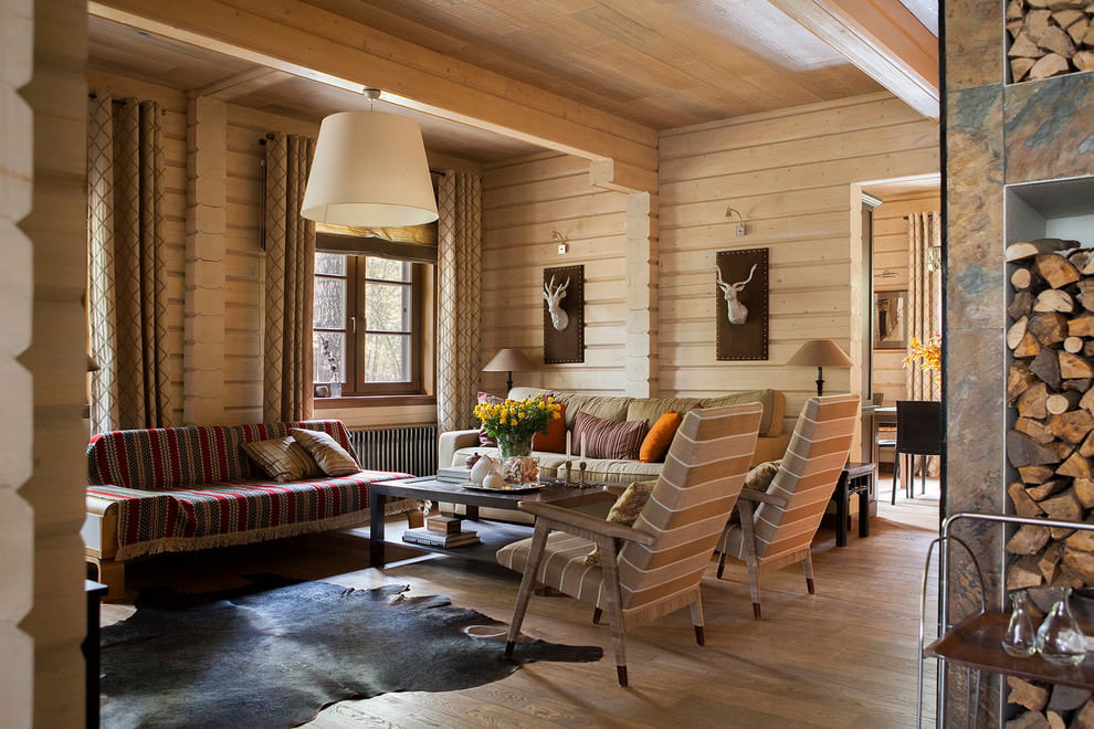 من السهل إعادة تصميم الطراز الريفي في منزل ريفي خشبي بسبب المواد الطبيعية للديكور.