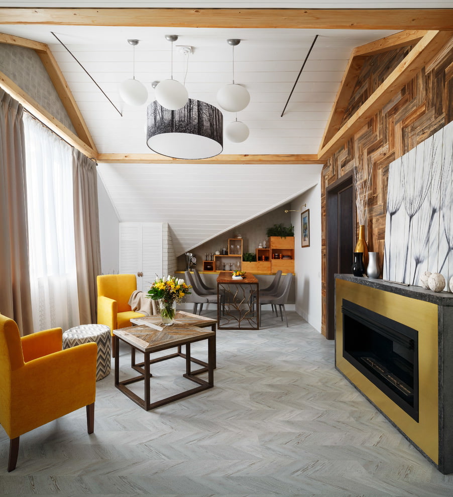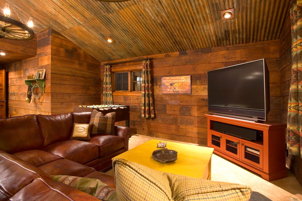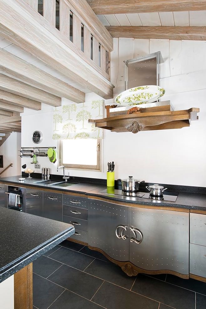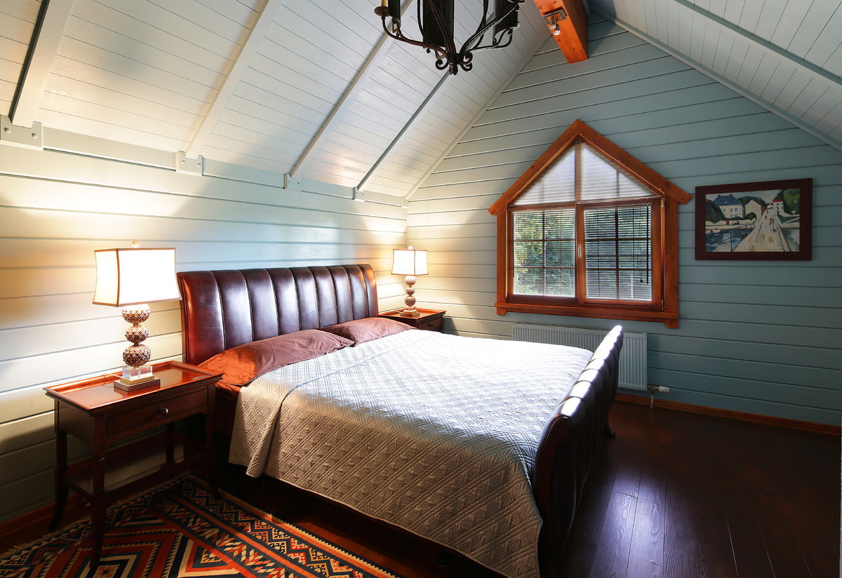من السهل إعادة تصميم الطراز الريفي في منزل ريفي خشبي بسبب المواد الطبيعية للديكور.