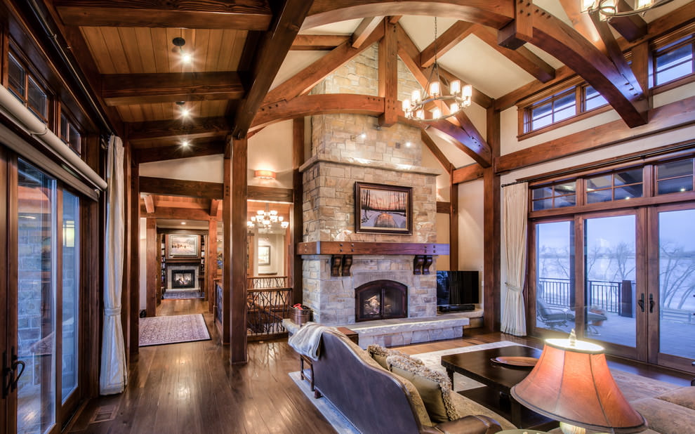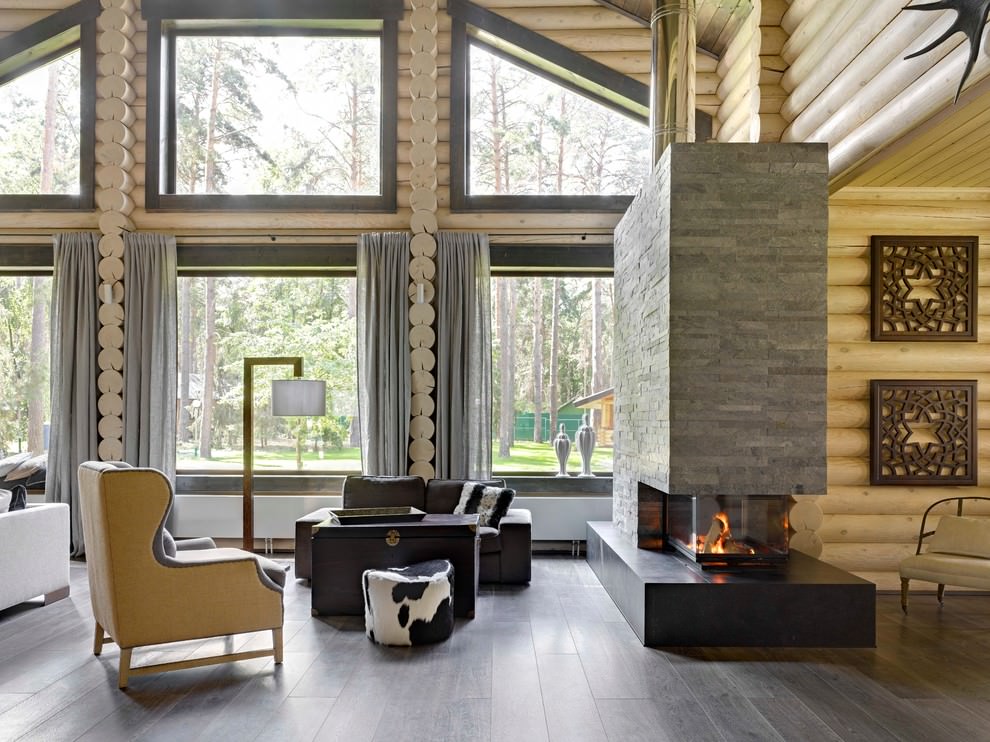 الجدران الخشبية والستائر الطبيعية تنقل شعور الطبيعة وانتعاش الغابة.