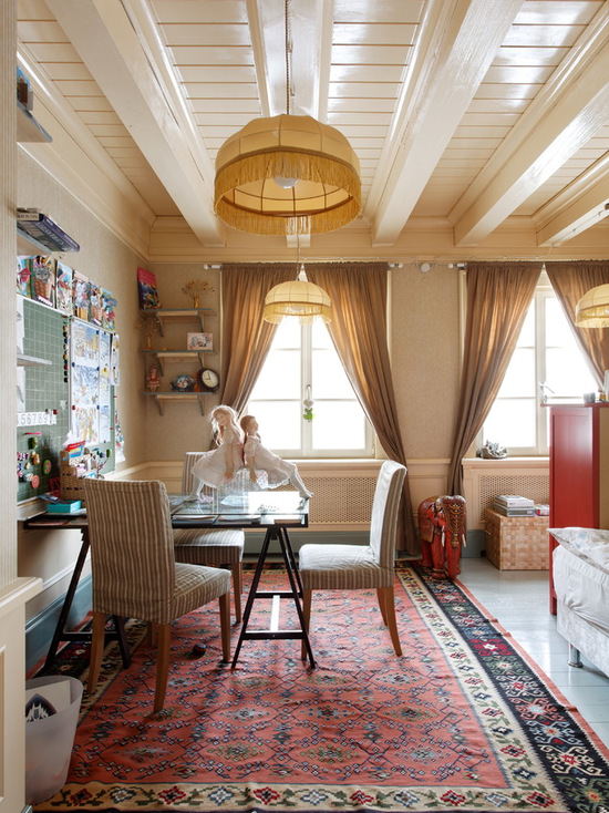 من المهم اختيار المواد الطبيعية للستائر ، واحترام الإحساس بالتناسب عند اختيار الديكور.