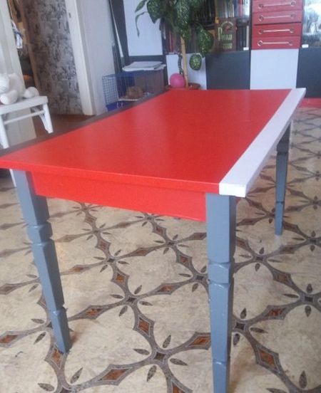 طاولة خشبية بعد اللوحة اكتسبت نظرة مختلفة تماما.
