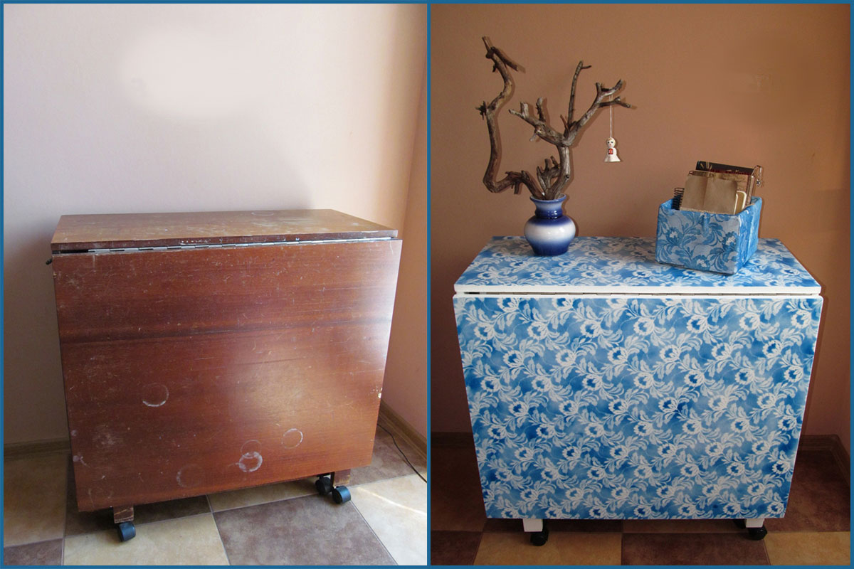 أبسط وأجمل نسخة من الديكور من الجدول القديم ، والتي لا تتطلب التدليل مع الطلاء - فيلم لاصق