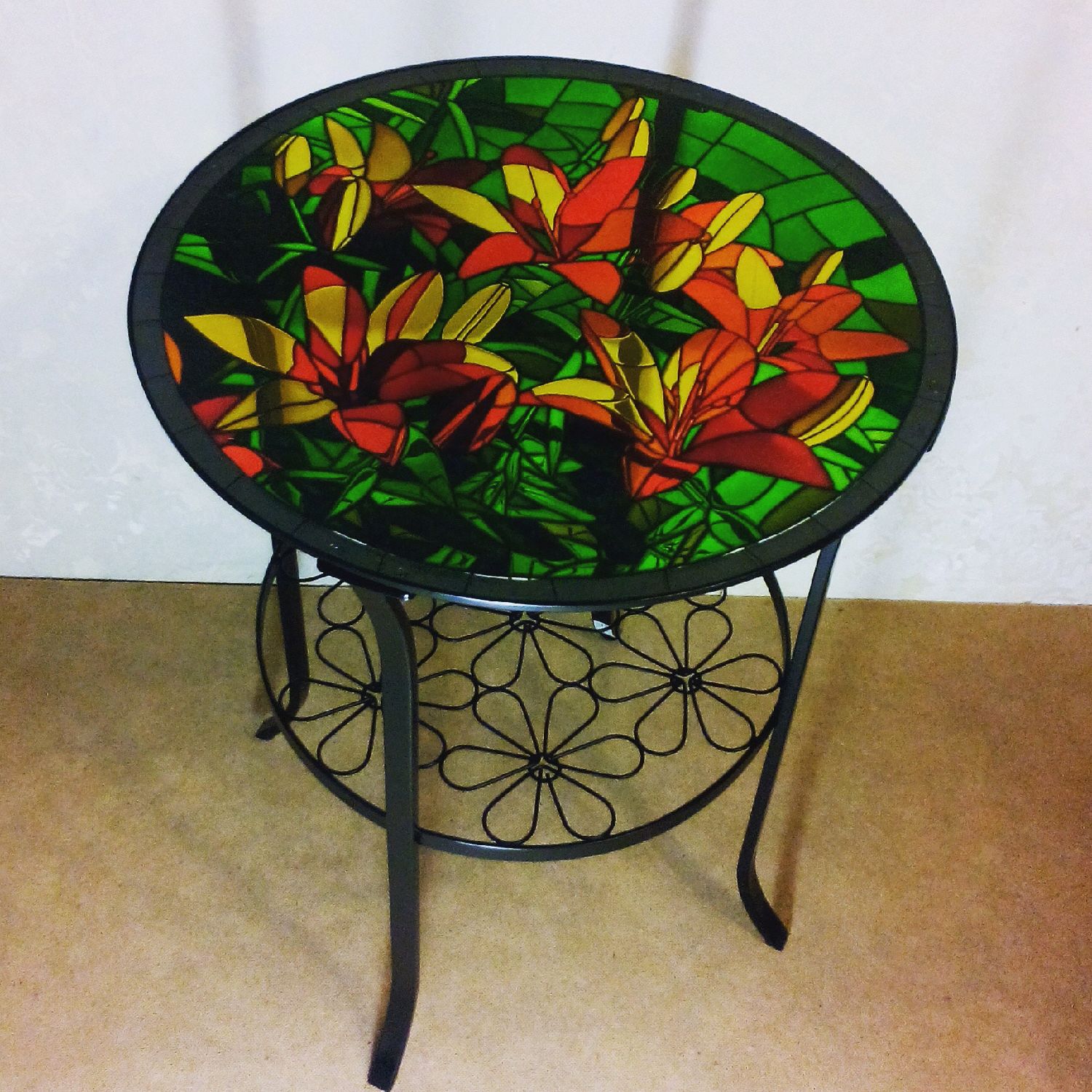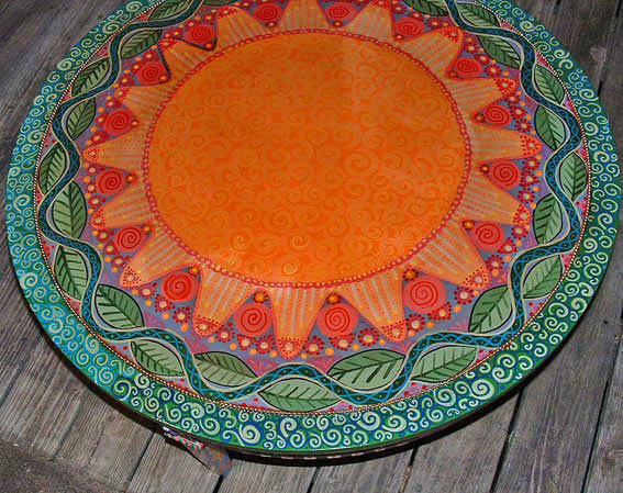 الجدول مع اللوحة الفنية يكمل تماما الداخلية في نمط العرقية أو ريفي.