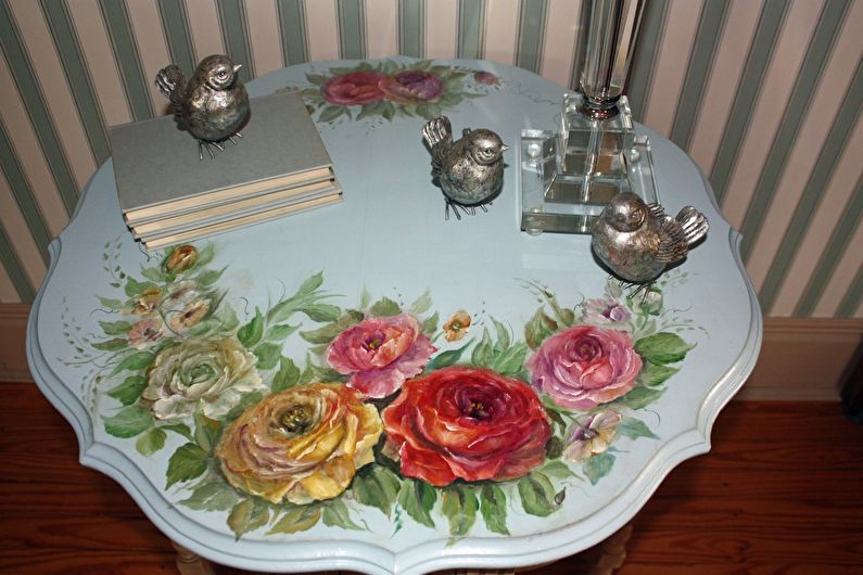 بالنسبة لأولئك الذين يمكنهم الرسم بشكل جيد ، فإن صورة تحفة فنية خاصة بهم على أثاث ستبقى لعدة سنوات مناسبة.