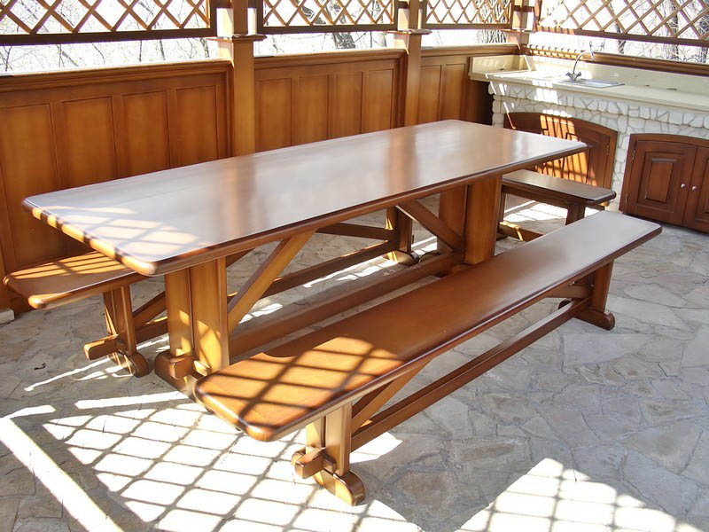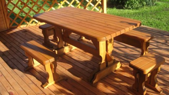 نظرًا لتعرض الأثاث الخارجي لمستويات مختلفة من الرطوبة ودرجة الحرارة ، ناهيك عن تجربة فترة الشتاء ، يجب معالجة الخشب بوسائل خاصة. هذا الإجراء مطلوب. سوف يساعد المنتج على العمل لفترة طويلة بسبب حقيقة أنه سيمنع تدمير القاعدة بسبب الرطوبة وتغيرات درجة الحرارة والحشرات.