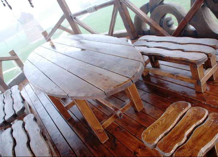 - خشب طبيعي. عادة ما يكون الأثاث في شرفة المراقبة مصنوع من خشب الصنوبر أو البلوط. إيلاء الاهتمام لأنواع الأخشاب الأخرى ، ولكن يجب أن تكون دائمة. يتمتع الخشب الطبيعي بطاقة خاصة ورائحة وشكل ، مما يخلق جوًا لطيفًا للتجمعات الودية.