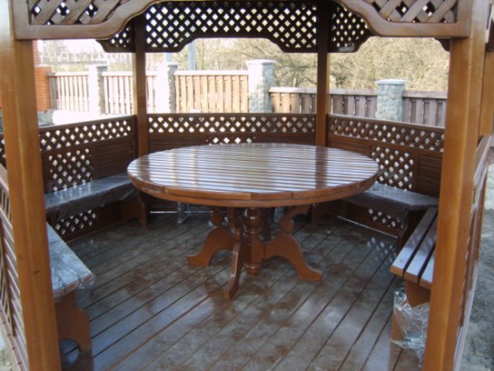 بادئ ذي بدء ، فإن شرفة المراقبة في دارشا لها مكان مهم. إنها تجمع كل الأقارب والأشخاص المقربين ، كما أنها موضوع للتعبير عن الذات والاعتزاز بالمالك. يجب أن تكون الطاولة هنا صلبة لتناسب جميع الضيوف ، وفي الوقت نفسه يتم تنفيذها ببراعة ، على نحو أفضل بأيدي المالك ، مما يدل على اهتمامه بمنزله.