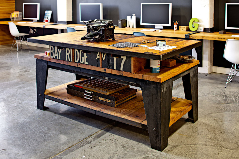 الجدول الأصلي مصنوع من الخشب الطبيعي مع عناصر معدنية "قرص العسل"