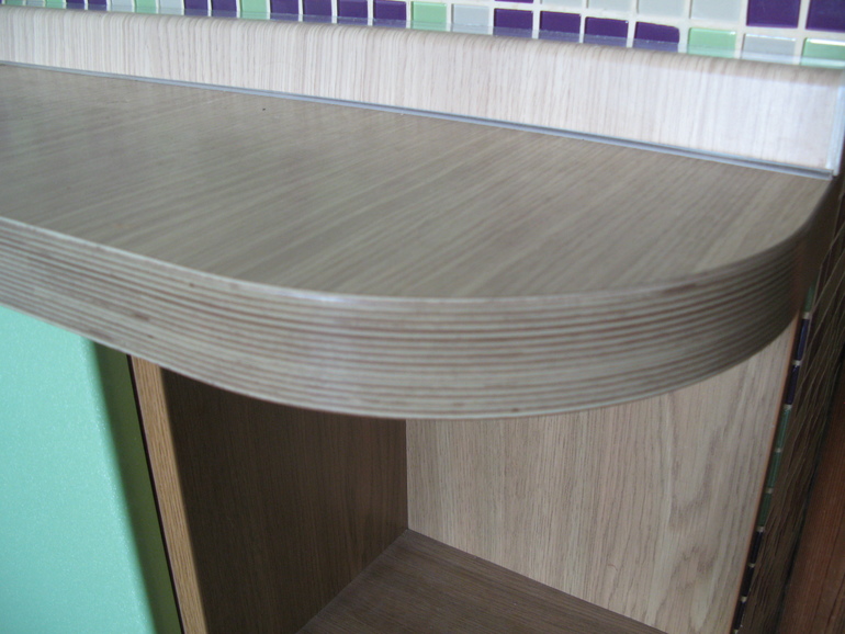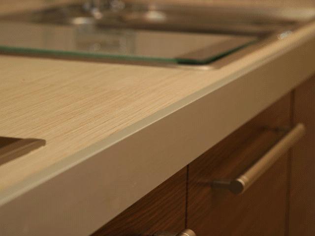يجب استخدامه لإنهاء الحافة التي يتعذر الوصول إليها من سطح الطاولة. في هذه الحالة ، لا تنسى الرطوبة التي تخترق الحافة وتدمير المواد.