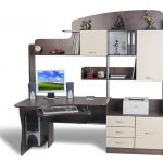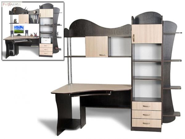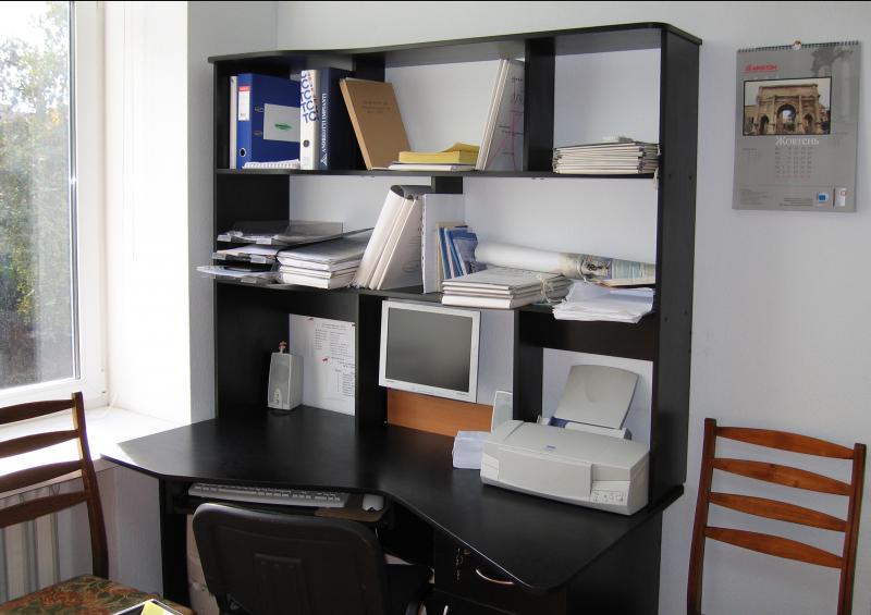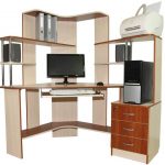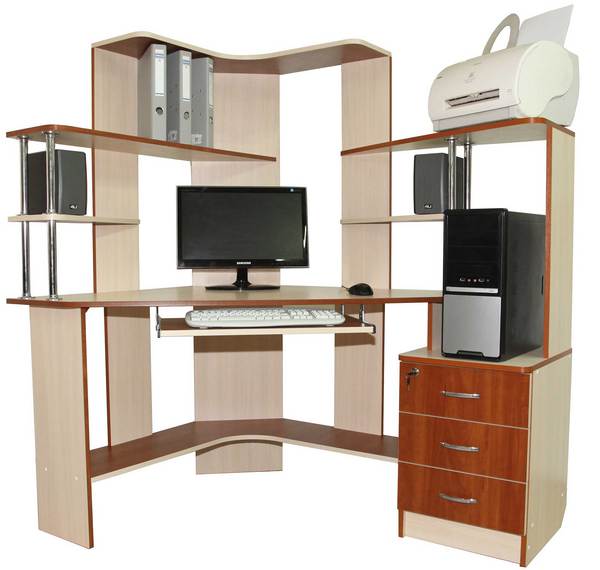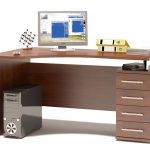 تم تصميم تصميم الطاولة بشكل مريح في زاوية الغرفة. في هذه الحالة ، يجلس المستخدم إما في قطري الجدول وعمودي على الشاشة ، أو يواجه الطول الرئيسي للطاولة ونصف دورة على الشاشة.