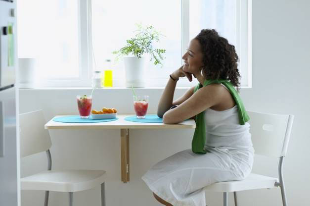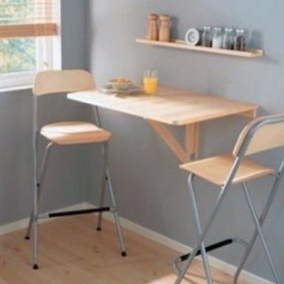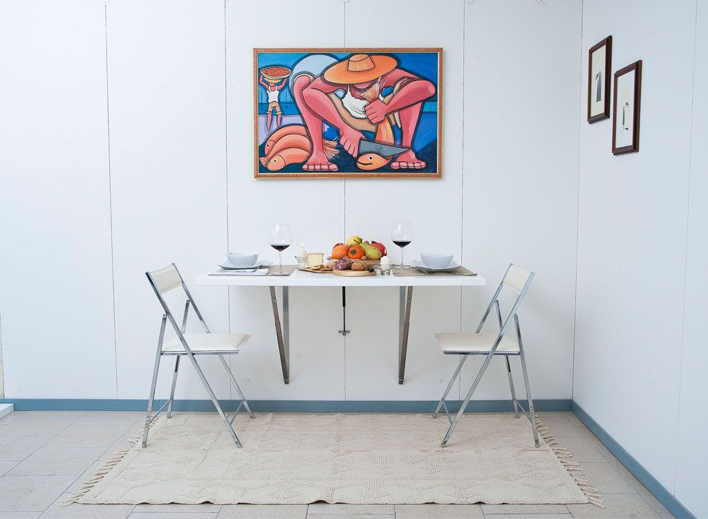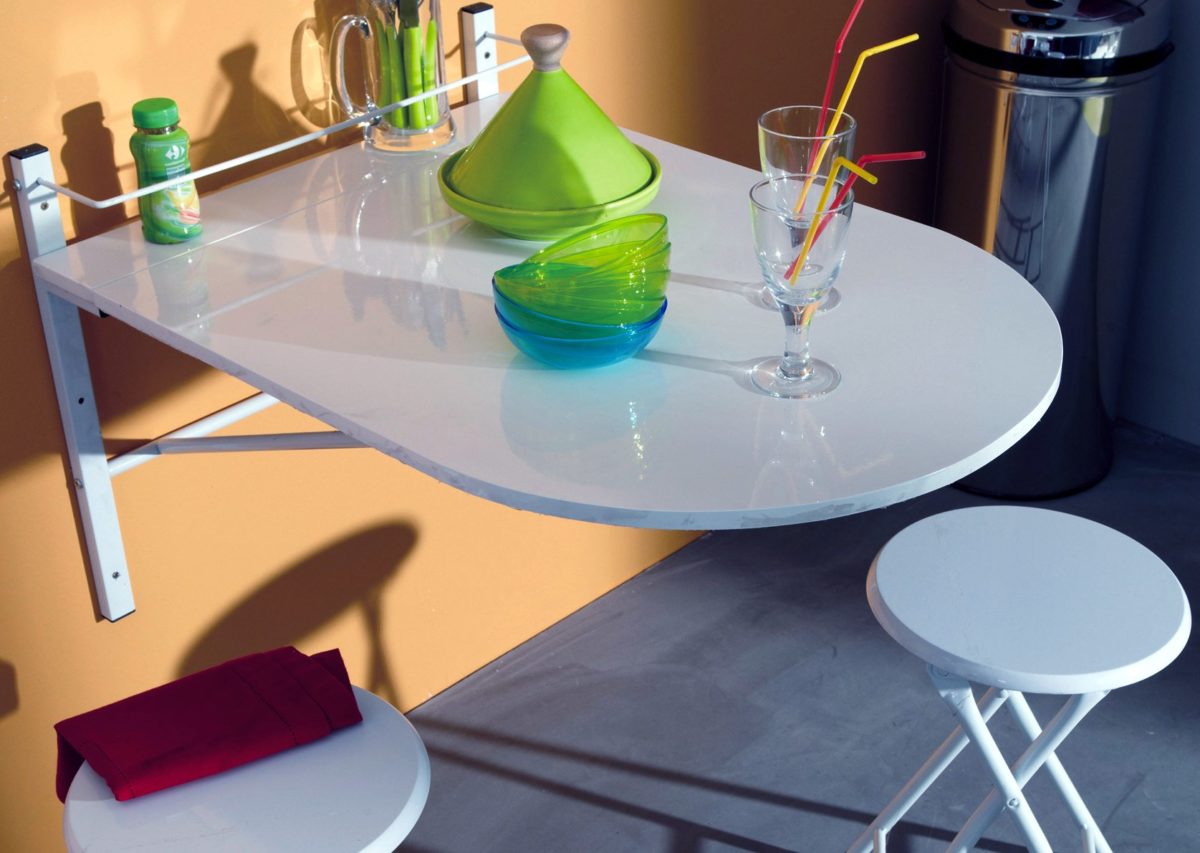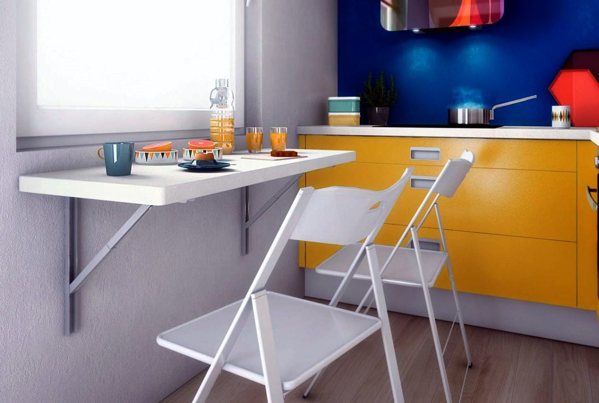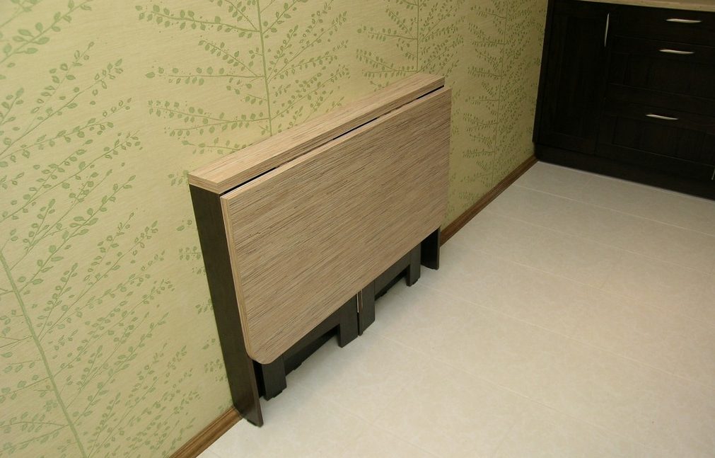 يمكن استخدام الطاولة القابلة للطي في مطبخ صغير جدًا أو على شرفة أو غرف صغيرة أخرى.