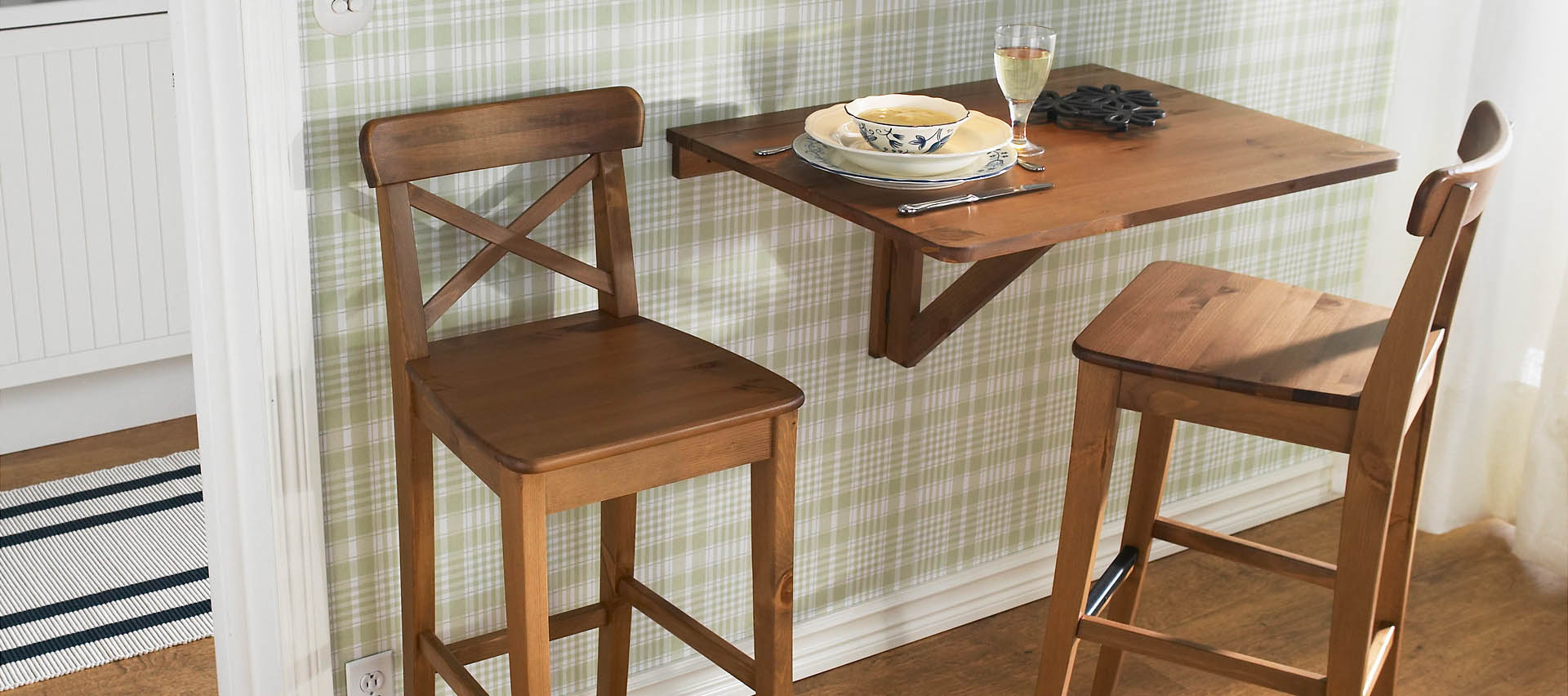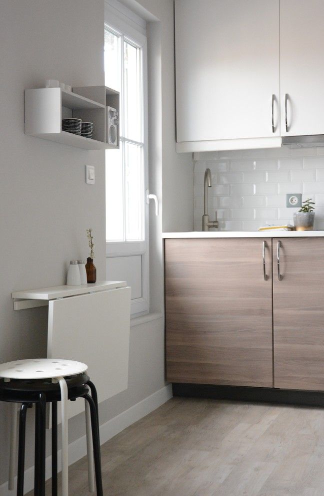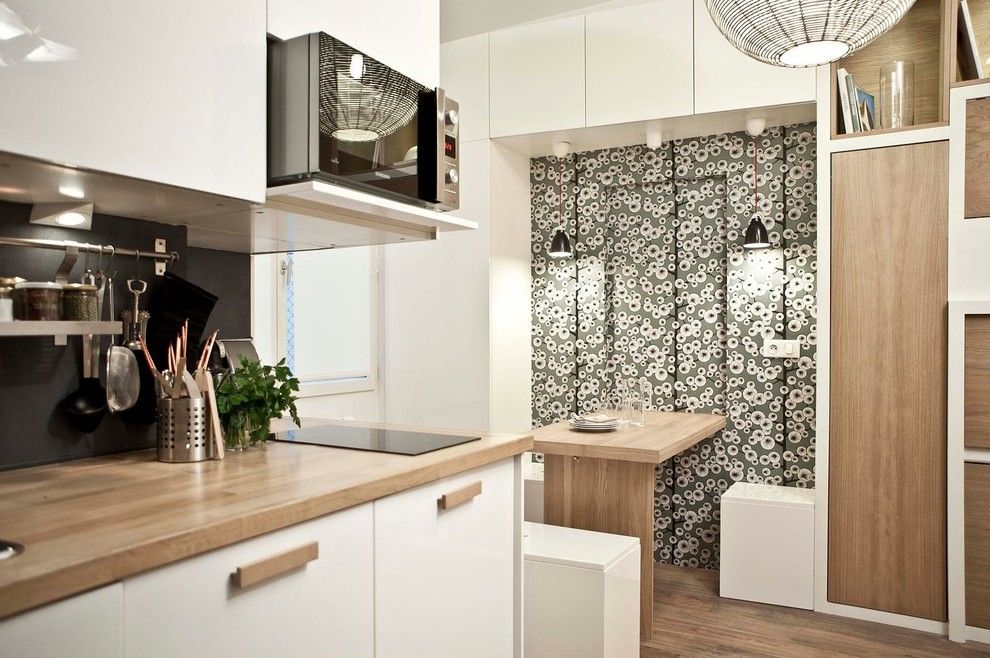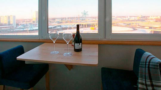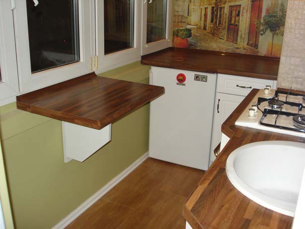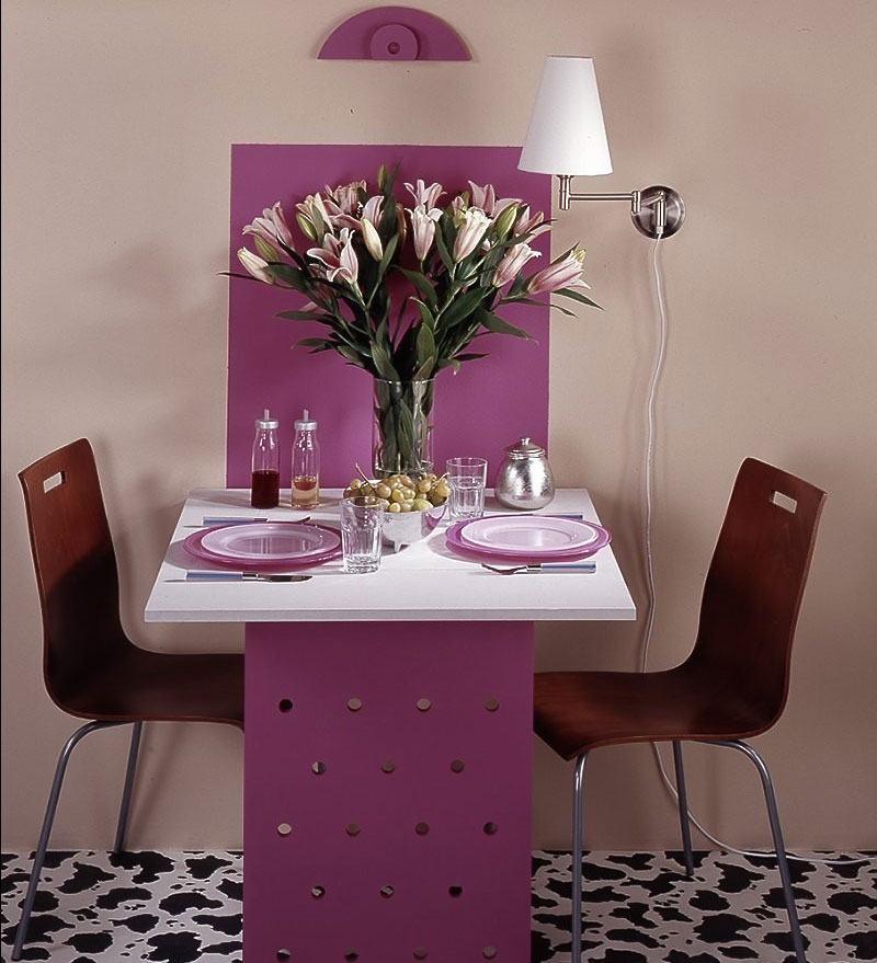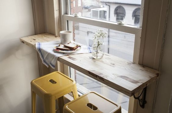 يمكن استخدام الطاولة القابلة للطي في مطبخ صغير جدًا أو على شرفة أو غرف صغيرة أخرى.
