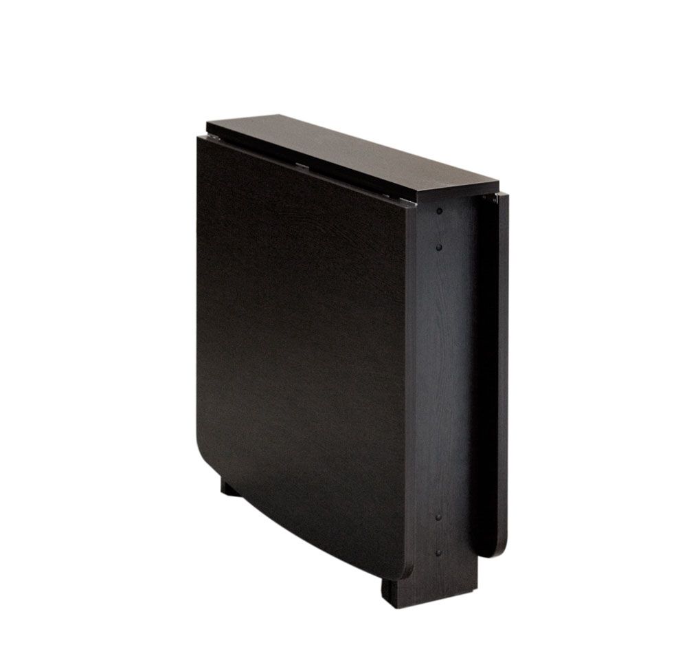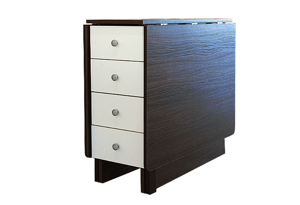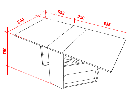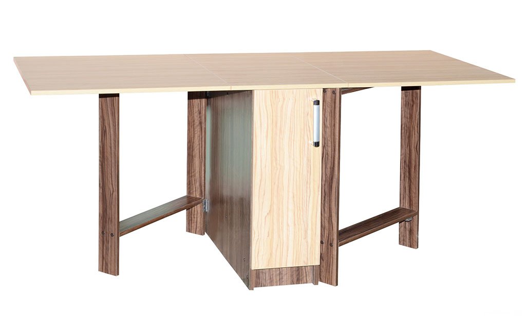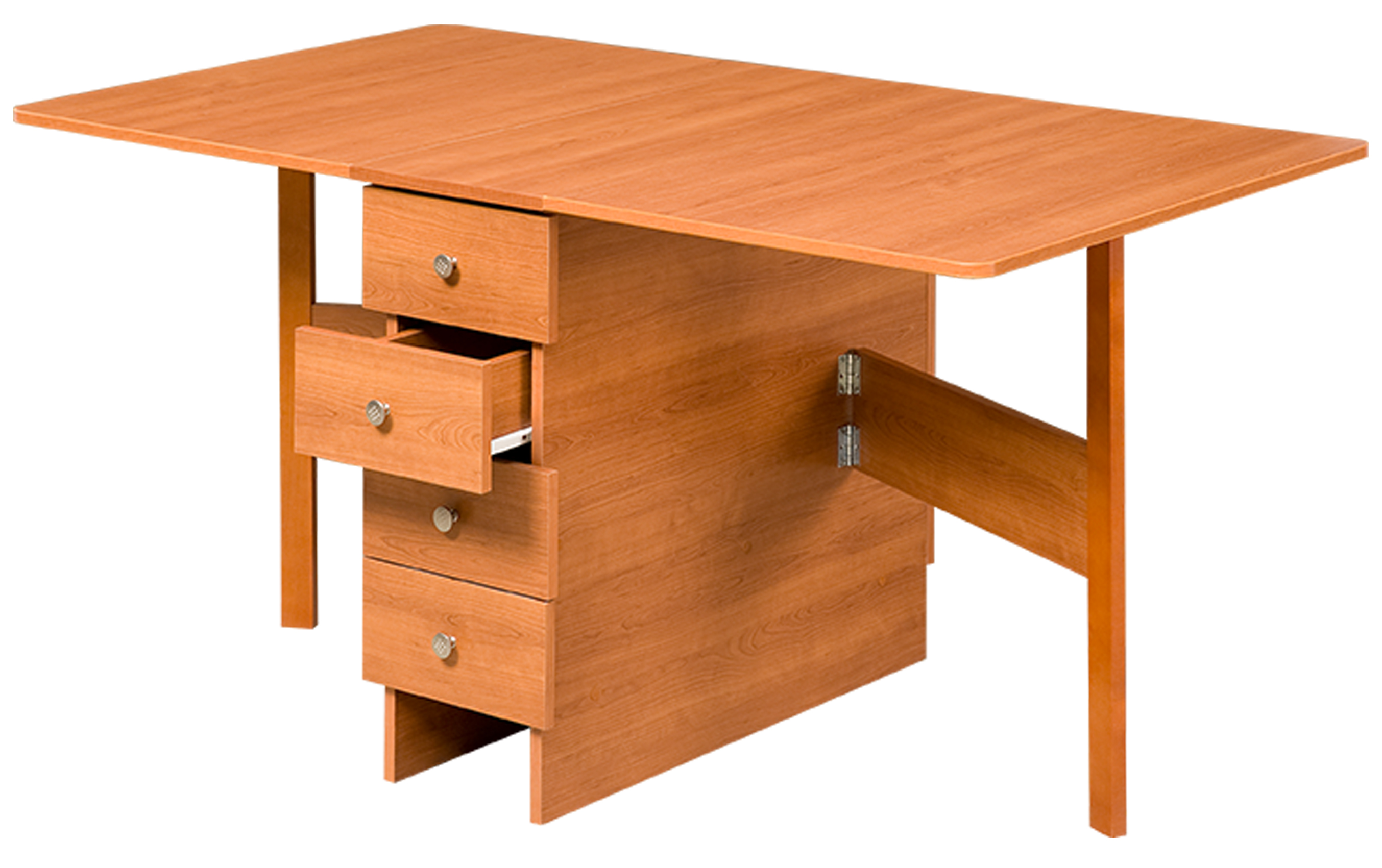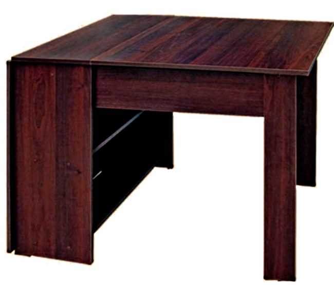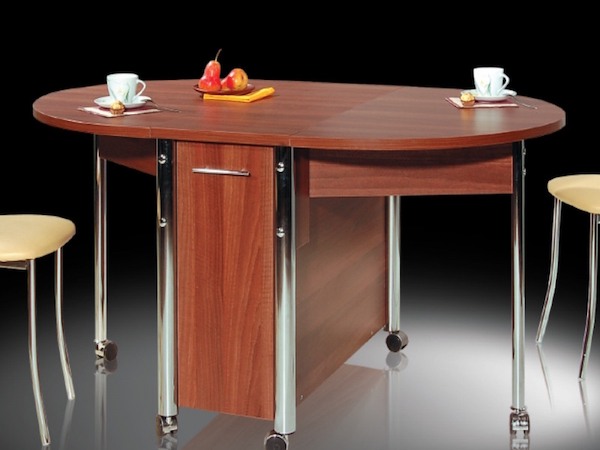 - أبسط يتكون من جزء مركزي ، سطح الطاولة - واحد أو اثنين ، والساقين. عادةً ، في الحالة المطوية ، تختبئ الأرجل أسفل الجزء المركزي ؛ وعلى الجانب تغطي الأجزاء من الطاولة. في الوقت المناسب ، يتكشف الغطاء ويستقر على الأرجل الطويلة.