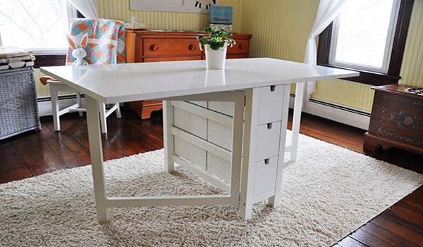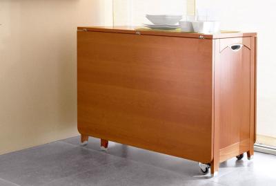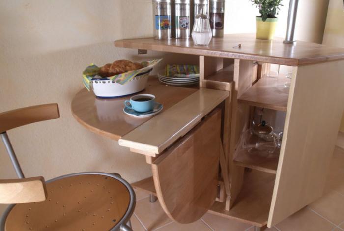 - تحويل الجدول. إذا رغبت في ذلك ، يمكن أن يصبح دفتر المائدة طاولة تحويل ويستوعب كراسي إضافية وميني بار وحتى أدراج للأطباق.