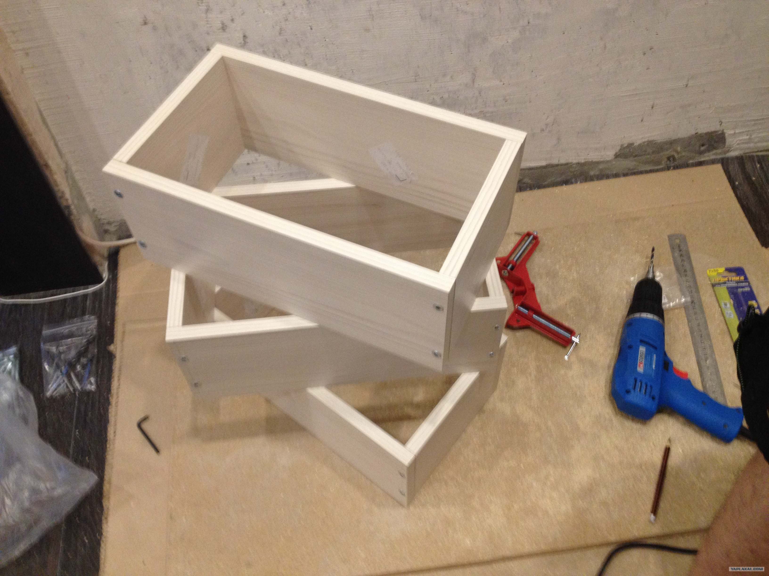 عند التجميع ، من المهم عدم نسيان قطع الصنفرة للحفاظ على مظهر أنيق ومرتب. حواف مزينة حافة. يمكن تزويد الجدران الجانبية والساقين بمطاط أو وسادات لباد ، لطي أكثر ملاءمة ، بالإضافة إلى منع تلف أغطية الأرضيات.