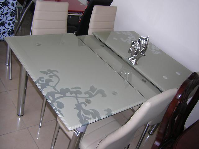 أنماط غير لامع على سطح الزجاج تحظى بشعبية كبيرة في أي الداخلية. يتم تطبيقها باستخدام طريقة السفع الرملي أو تقنية الحفر. تتضمن كلتا الطريقتين استخدام استنسل وإنشاء نمط غير لامع على سطح الطاولة بواسطة وسائل ميكانيكية أو كيميائية.