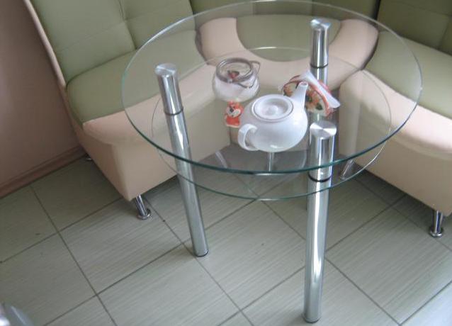 منضدة زجاجية ذات إطار سفلي تم اختياره بشكل صحيح ، وهي ذات أهمية خاصة في الغرف الصغيرة.