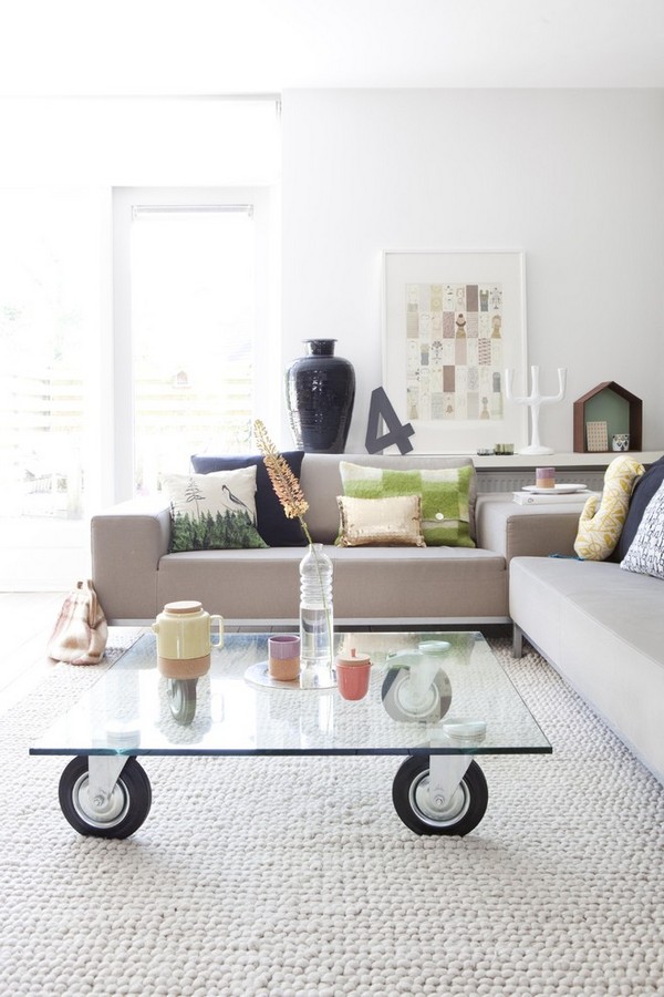 - إذا كانت الفكرة الأساسية للغرفة مصممة على طراز الحد الأدنى ، فيمكن إيقاف الاختيار على قاعدة من الزجاج أو المعدن الرقيق ، في حين أن الطاولة نفسها مجهزة بشكل أفضل بعجلات بحيث يمكن نقلها في أي لحظة إلى المكان الصحيح ؛