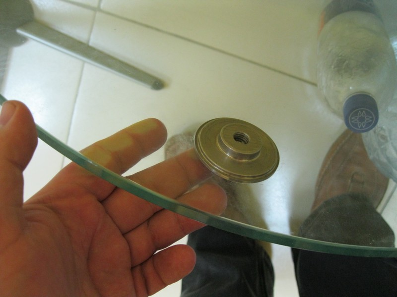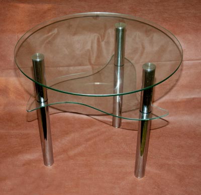 إذا كنت ترغب في صنع طاولة مع زجاج بيديك بسطح شفاف بسيط ، دون زخارف ورسومات إضافية ، يمكنك تحسينه عن طريق تثبيت رف إضافي. تشبه عملية صنع قطعة الأثاث هذه تلك الموصوفة ، فقط بدلاً من الأرجل المعتادة ، هناك حاجة إلى سيقان خاصة - مع مسمار ، والذي سيكون ثقوبًا مسبقة الحفر في رف زجاجي وغسالات وسيطة. لموثوقية التثبيت ، استخدم غراء البناء الشفاف.