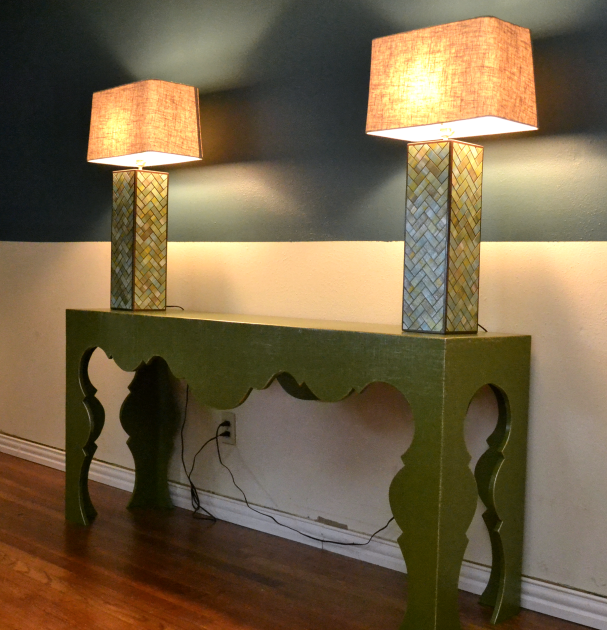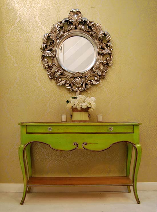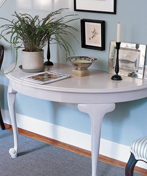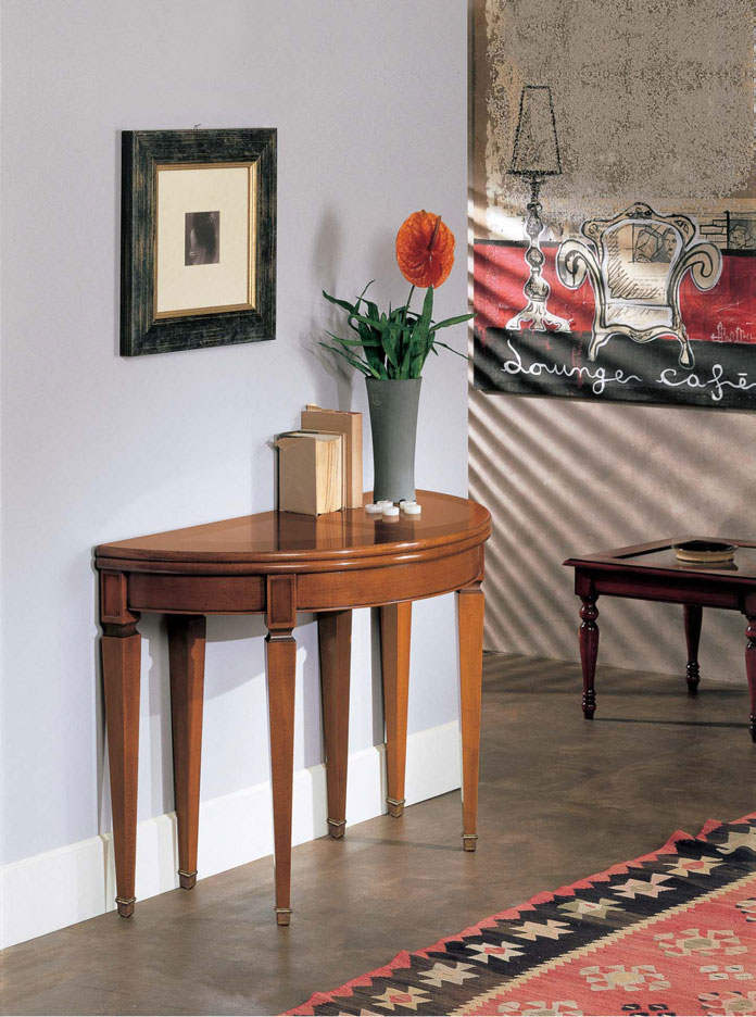 طاولة ضيقة على الكونسول على أرجل مستقيمة أو منحنية ، ومناسبة للداخلية المختلفة