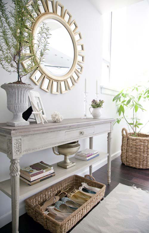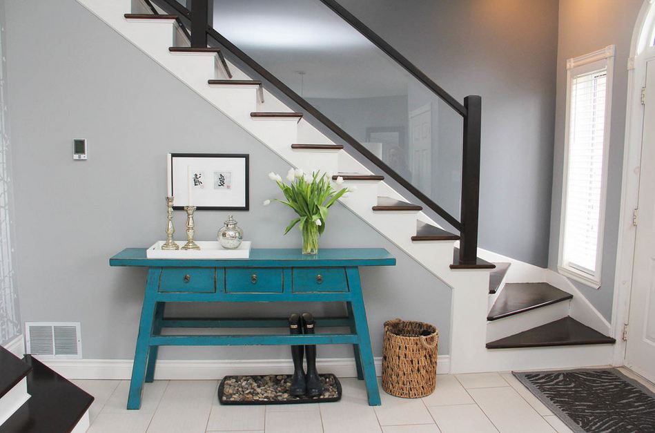 في المدخل على الطاولة ، احتفظ بالمفاتيح ، ضع شمعدانًا أو صورة عليها. وفي مساحة غرفة النوم على وحدة التحكم ، يُسمح بإعداد "مشغل تقسيم" أو جهاز تلفزيون.