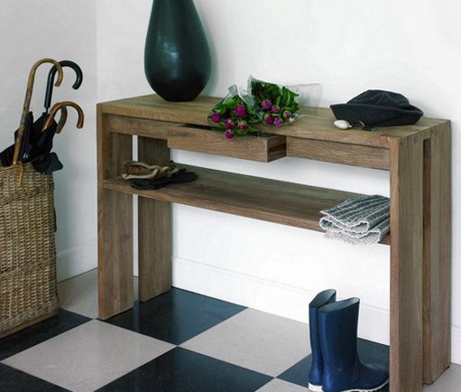 لن نتحدث عن أشكال مختلفة من جداول وحدة التحكم ، لأن هناك عددًا لا يحصى منها. دعنا نقول عن نطاق هذه القطعة من الأثاث. يبدو الأثاث رائعًا في الأروقة وغرف المعيشة ، ويعمل كبديل للبوفيه.