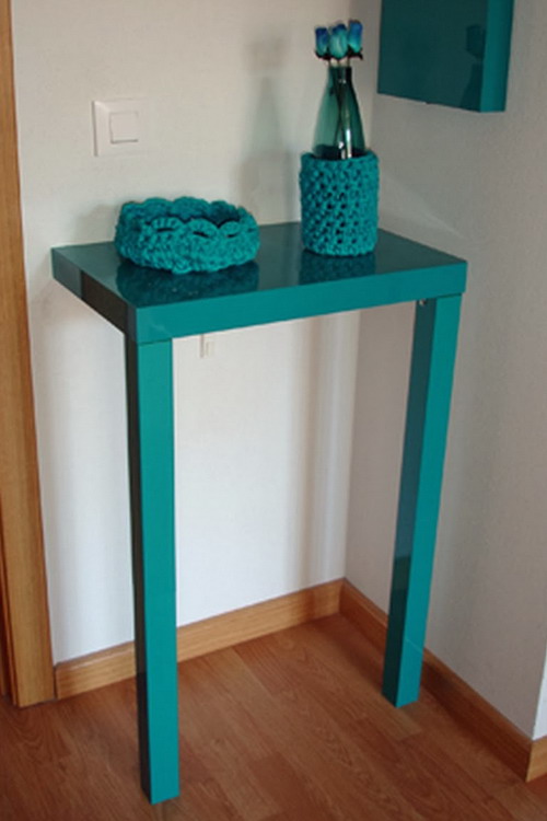 يمكنك تحويل هذا الأثاث إلى شيء يشبه ميني بار ، أو وضع صورة عليه في إطارات. الفكرة الأصلية هي استخدام جدول وحدة التحكم في خدر أو لتخزين مستحضرات التجميل.