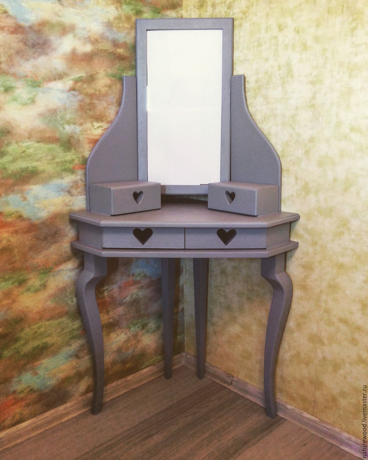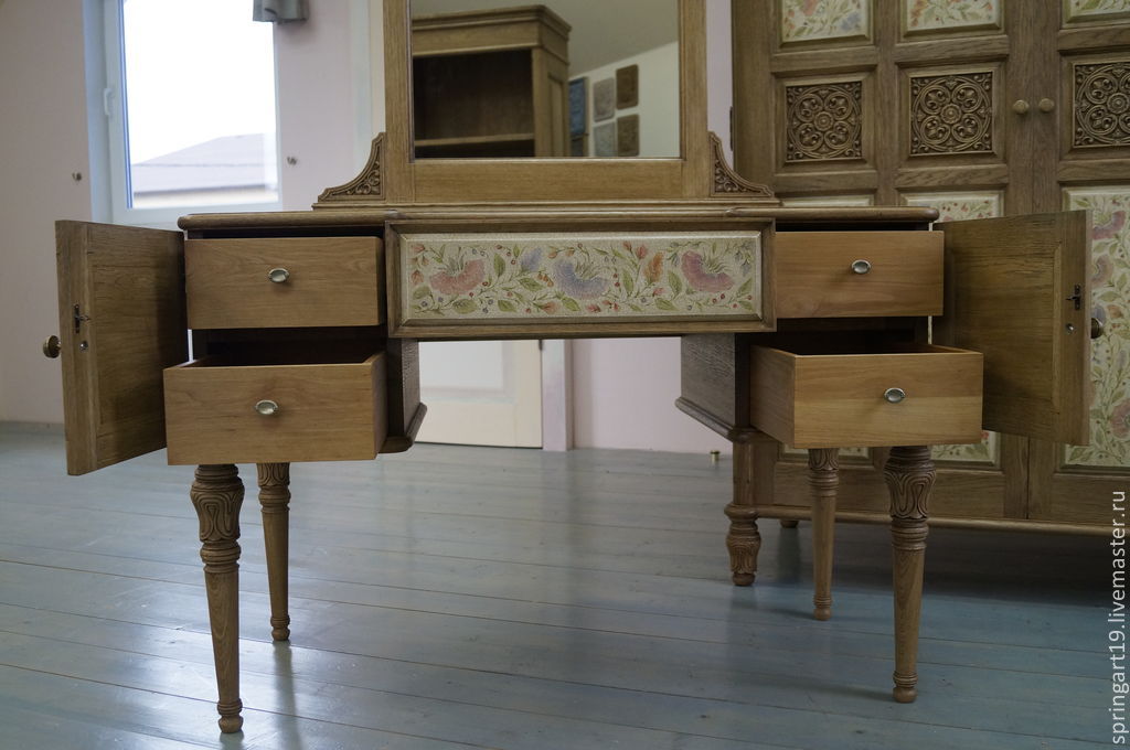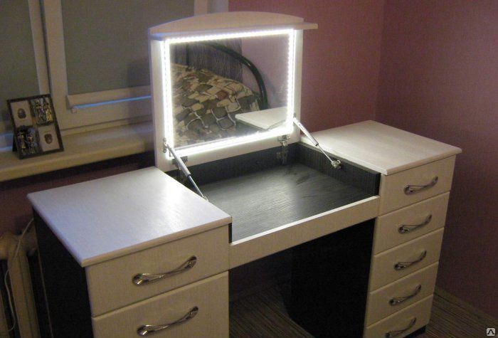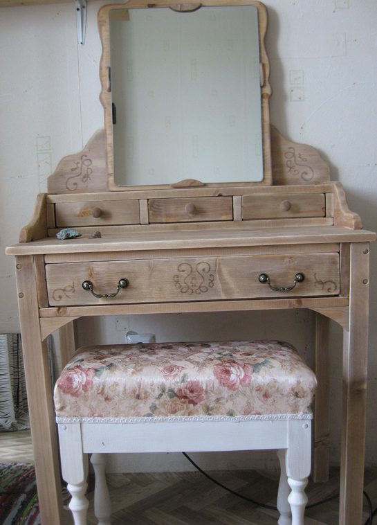 تفرد كل منتج ، تم إنشاؤه بيديه ، أكثر من نصف يتكون من الديكور. المواد الحديثة والعناصر الزخرفية تسمح لك بإنشاء طاولة خلع الملابس في أي نمط.