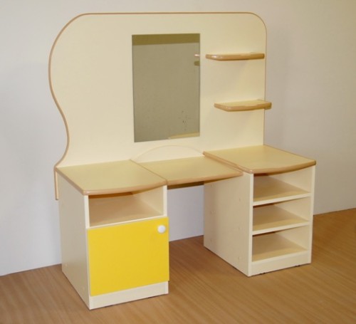 من الممكن صنع طاولة تبديل الملابس مع يديك بدون مرآة (يتم شراء المرآة وتزيينها بشكل منفصل ، مثبتة مباشرة على الحائط). يُنصح المبتدئين بعمل نموذج بدون مرآة. يجب إجراء إنتاج منضدة الزينة بأيديهم بالترتيب التالي:
