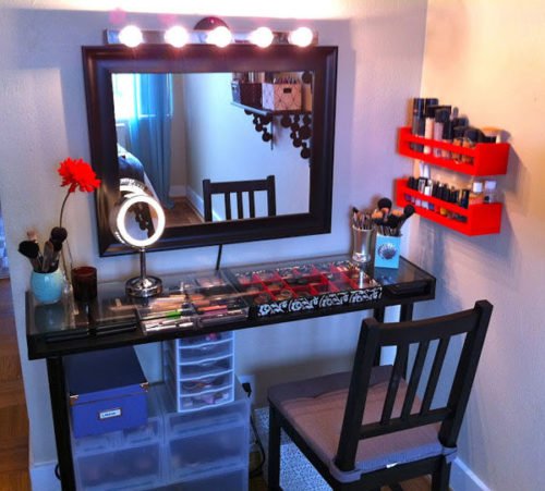 مخطط إنشاء منضدة الزينة دون مرآة في غرفة النوم تفعل ذلك بنفسك