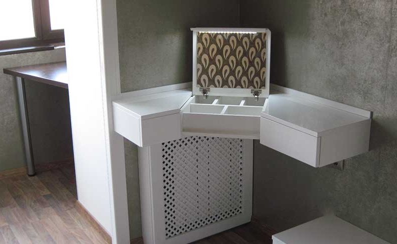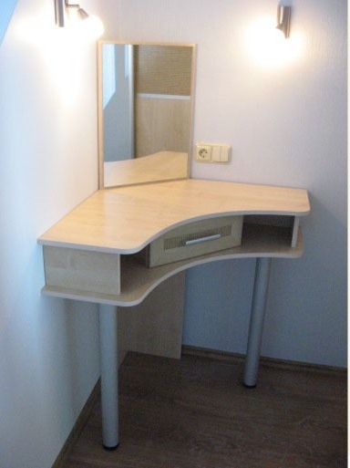 تتيح التقنيات والمعدات والمواد الحديثة إنشاء طاولة خلع الملابس الفريدة بأيديهم. باتباع تعليمات بسيطة ، سيتمكن حتى الأشخاص الذين ليس لديهم خبرة من صنع قطعة أثاث جميلة بأقل تكلفة في غضون أيام قليلة. من خلال صنع طاولة بيديه ، يمكن للسيد صنع أثاث بالحجم والوظائف المطلوبة واللون والشكل ، وذلك باستخدام مواد آمنة للصحة واختيار مرآة ملائمة في الشكل.