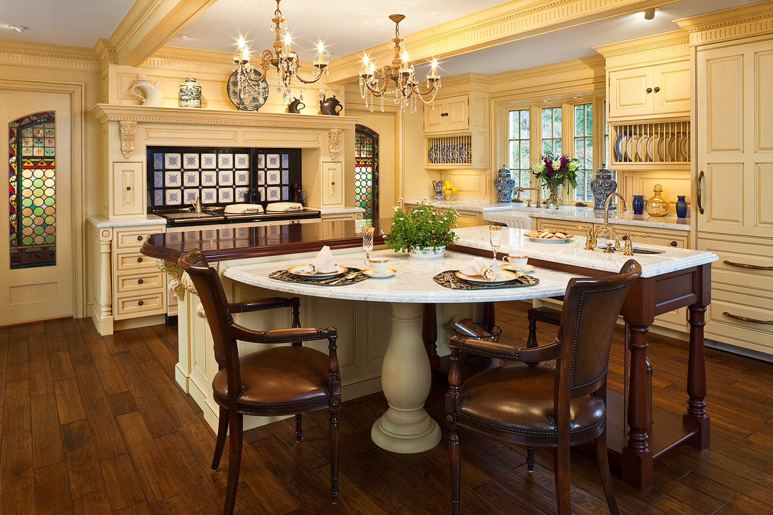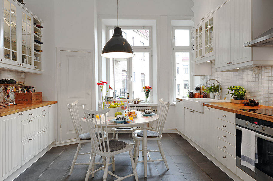 إذا كان لديك مطبخ كبير ، فمن الأفضل وضع طاولة مربعة.
