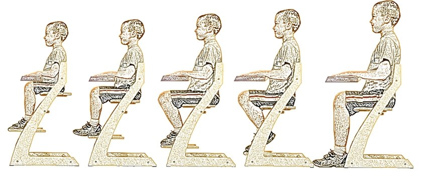 يمكن أيضًا تجهيز كرسي متنامٍ للأطفال الصغار بمساند للذراعين وعارضة أمامية آمنة بحيث لا يمكن للطفل أن يسقط منه. يمكن تركيب هذه الأجزاء بمسامير ، وإزالتها لاحقًا من الكرسي. ليست هناك حاجة إلى مساند للذراعين للصفوف على طاولة المدرسة ، لأن الأيدي موجودة دائمًا على الطاولة.