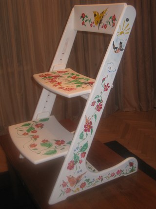 لزخرفة المنتج النهائي سوف تحتاج - معجون ، التمهيدي ، ورنيش أو وصمة عار ، ورسم اللون المطلوب. يتم اختيار عناصر تزيين وفقًا لتقدير السيد. يمكنك جعل المقعد ناعمًا ، بعد تنجيده بالمطاط الرغوي وتزيينه بمفروشات من الأعلى. بالنسبة للأطفال الصغار جدًا ، من الأفضل أن تنظف بجلد أو قماشة زيتية لتتمكن من تنظيف السطح.
